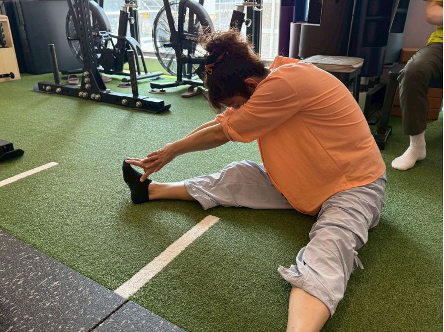 拉伸大腿後側膕繩肌的狀態是預防和緩解下背疼痛的最關鍵動作之一,同時能改善骨盆與體態尤其視障長輩常因久坐導致骨盆後傾,透過拉伸膕繩肌,能讓骨盆慢慢回到正確位置,讓體態更顯年輕有精神。