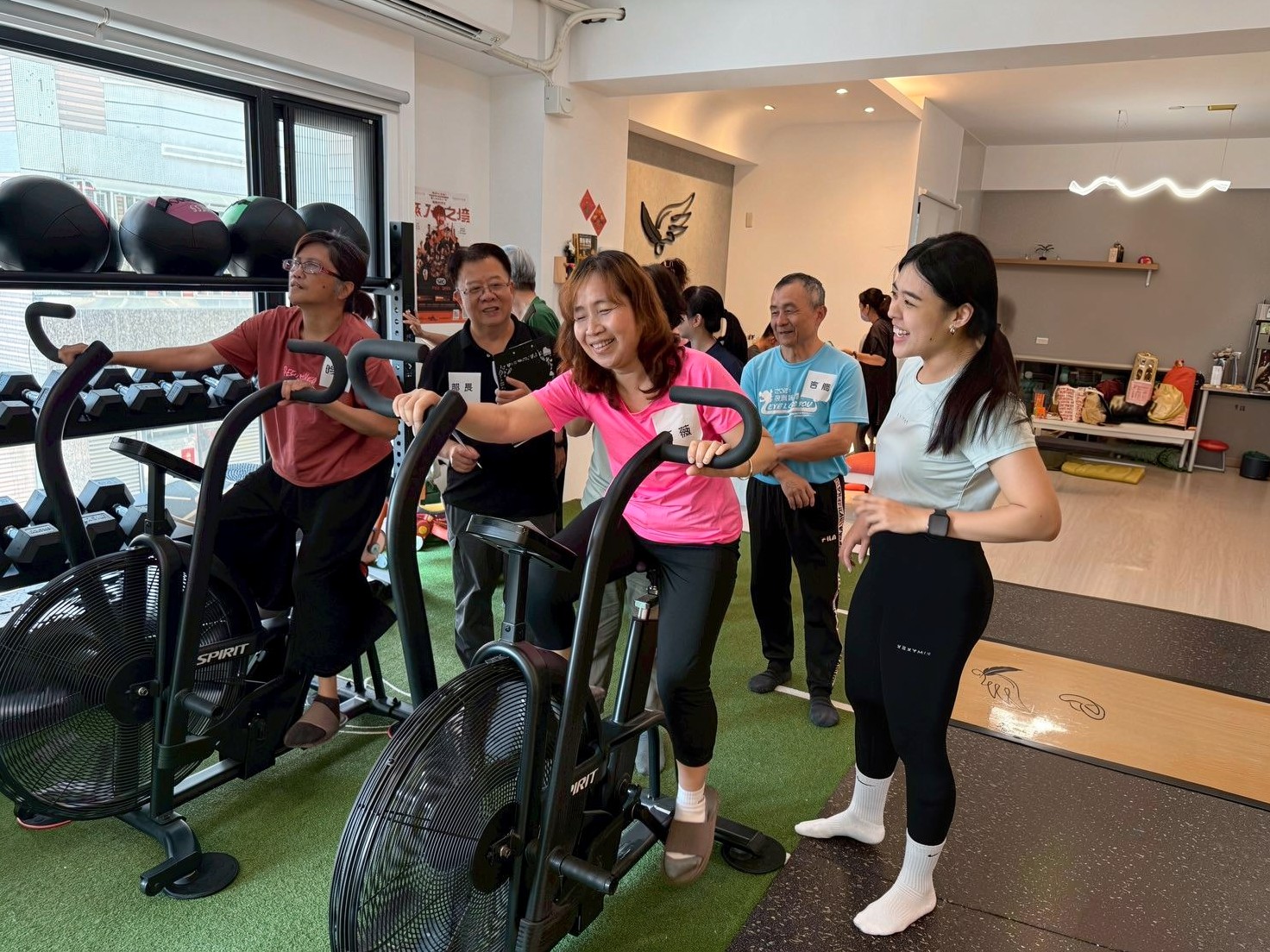 風扇車需要手腳並用(推拉手把與踩踏腳蹬),能同時訓練全身肌群,且對關節產生的衝擊極低,並具有「你踩得越快,阻力就越大」的特性,這讓每位長輩都能根據自己的體力現況,自動找到最適合的運動強度,安全且不會過度負荷,對於視障者是相對安全的體適能活動。